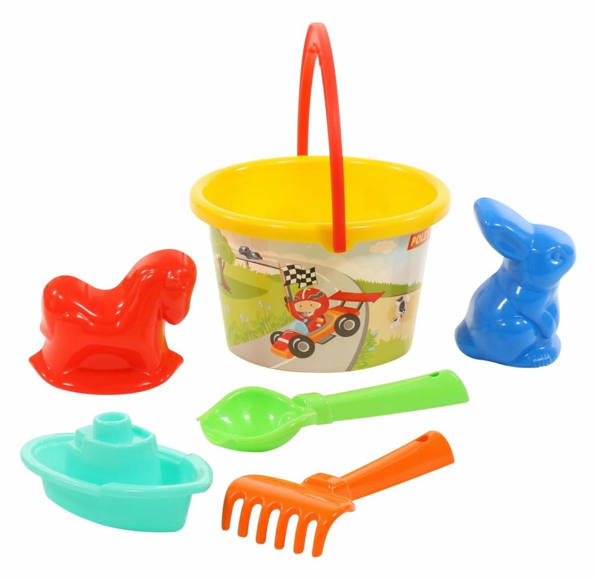 Poręczne, kolorowe wiaderko z akcesoriami do piasku to niezbędnik małego plażowicza czy budowniczego. Zestaw sprawdzi się w piaskownicach, stołach wodnych itp. W zestawie, oprócz wiaderka, znajdują się: łopatka, grabki, stateczek oraz 2 foremki w kształcie zajączka i konika.