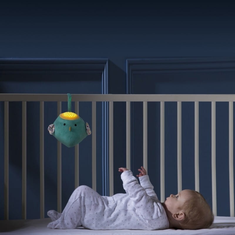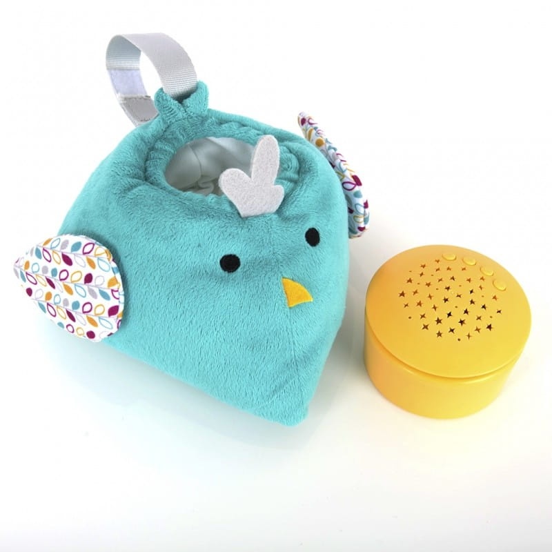 Uroczy projektor z pozytywką PurFlo Little Lumies zapewni spokojny sen Twojemu Maluszkowi. Przyjemny, zmieniający się kolor oraz uspokajające dźwięki pomogą w zasypianiu. Dodatkowo projektor posiada automatyczny wyłącznik po 30 minutach działania. Ptaszka można przyczepić do łóżeczka, wózka itp. za pomocą rzepa. Idealnie sprawdzi się w przypadku, gdy dziecko nie chce zasypiać w ciemności. Może służyć również jako przytulanka dla starszego dziecka.