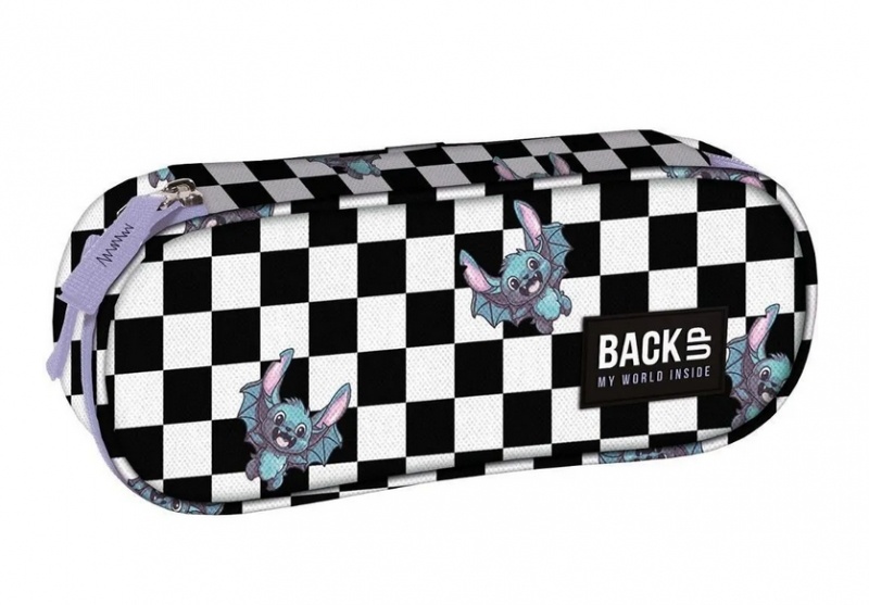 Wewnętrzna klapka posiada gumkę na 5 sztuk przyborów do pisania, dodatkowo w piórniku znajduje się klapka z gumką na 4 sztuki przyborów oraz kieszonką z siateczki zapinaną na zamek.