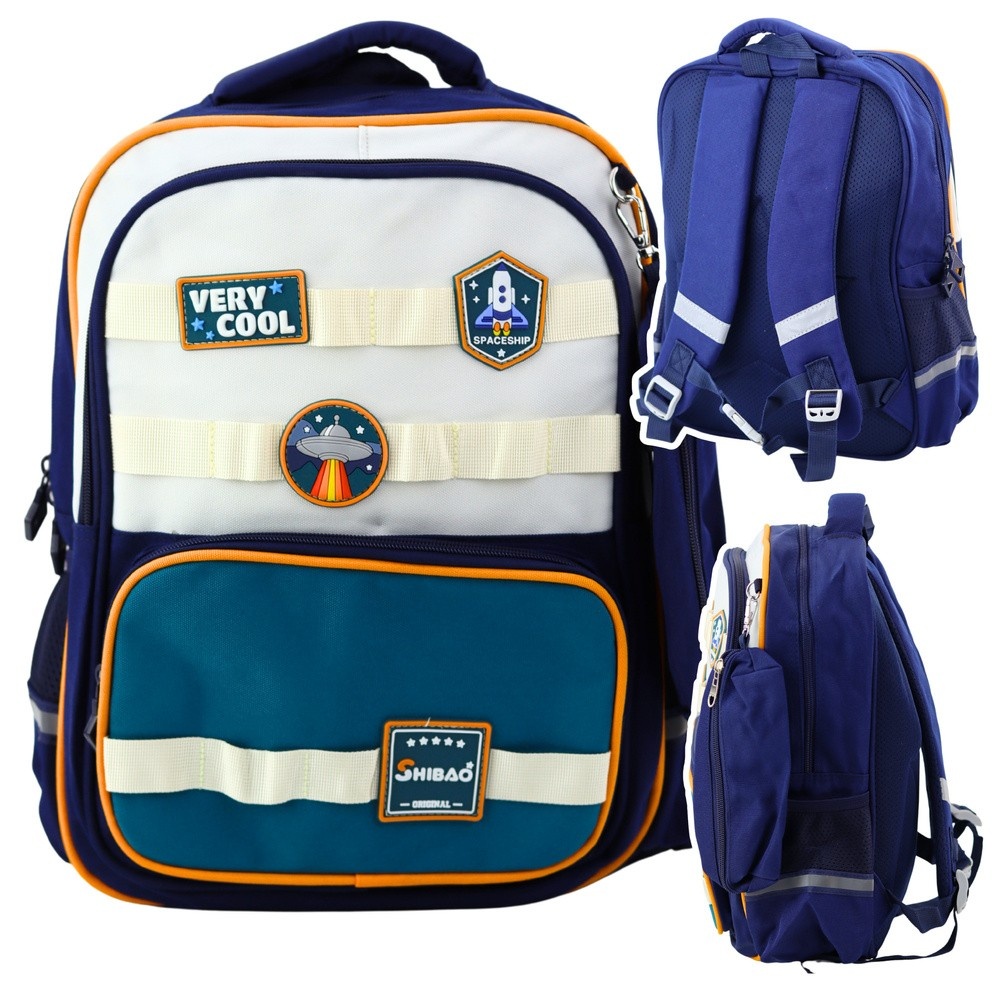 Plecak wyróżnia się naszywkami ze statkami kosmicznymi, które dodają mu charakteru. W zestawie znajduje się również dopinany piórnik z karabińczykiem, który można zawiesić na plecaku. Pas piersiowy zapewnia lepsze dopasowanie i stabilność podczas noszenia, a elementy odblaskowe poprawiają widoczność dziecka po zmroku.