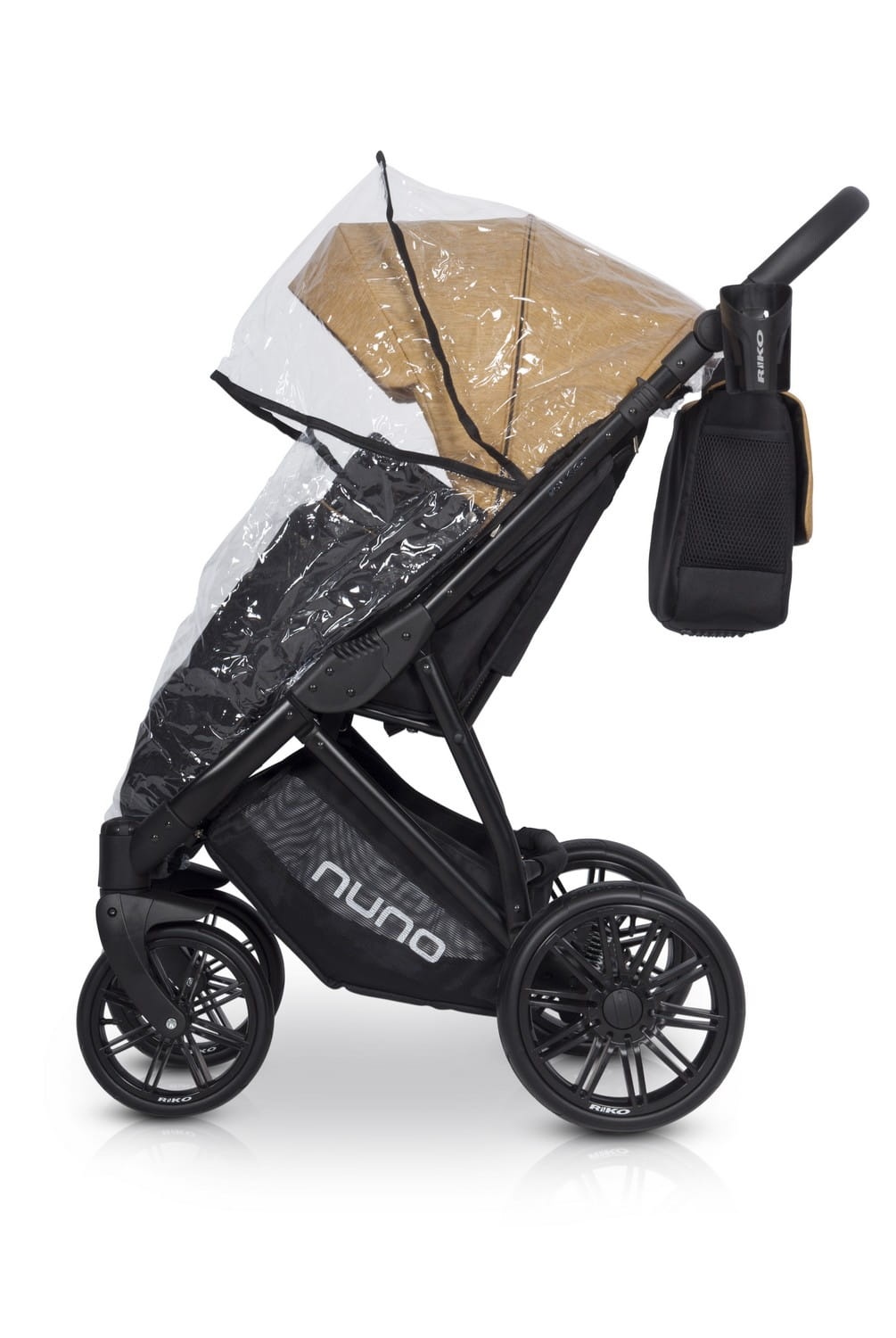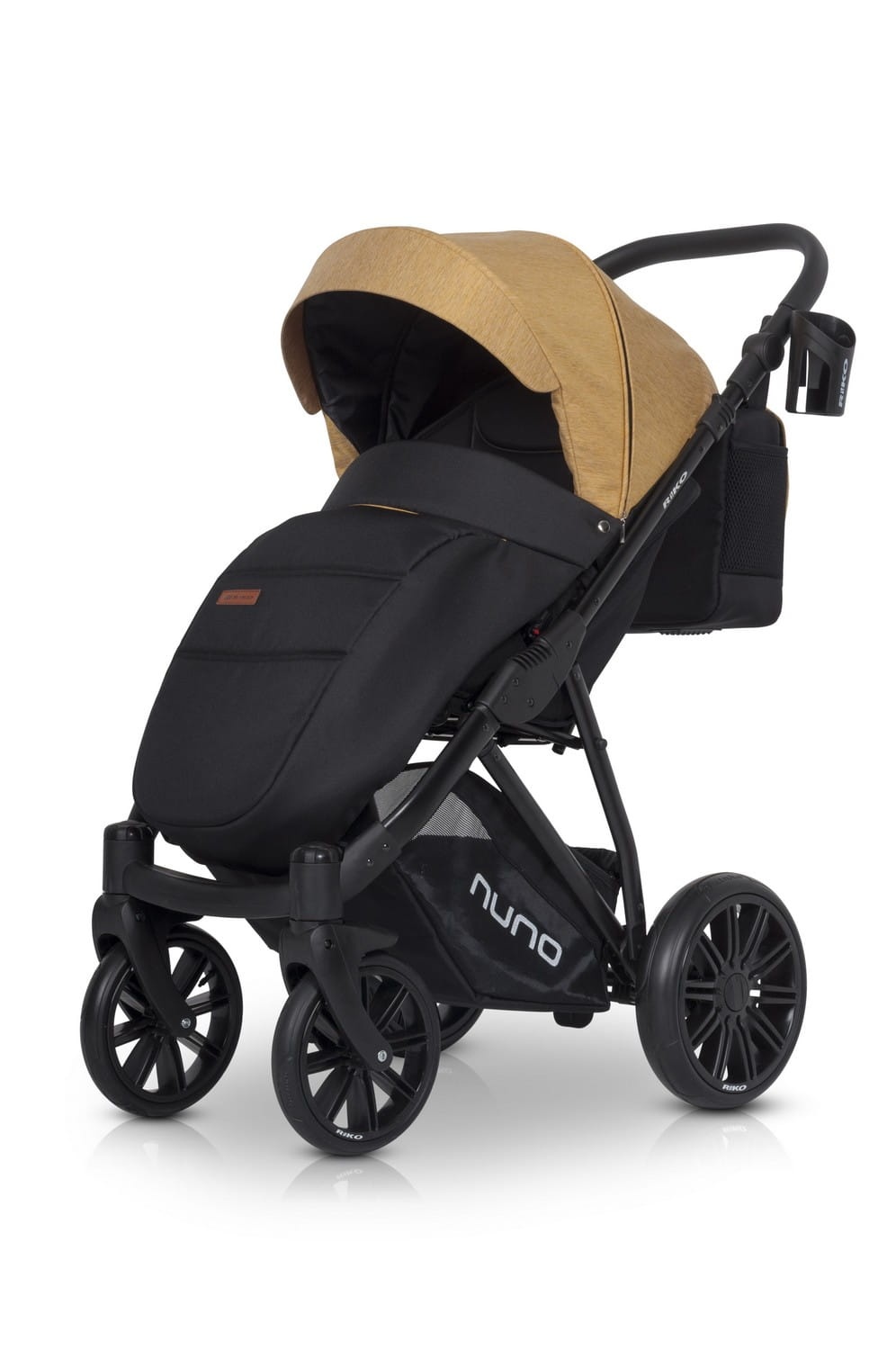 Wózek spacerowy NUNO polskiej marki RIKO to wygodny i solidny wózek, który sprawdzi się również zimą. Dzięki dużym bezdętkowym kołom z oponami z poliuretanu i regulowanej twardości zawieszenia gładko jeździ po każdej nawierzchni, zarówno w mieście, jak i w terenie. Wózek wyposażono w innowacyjny system płynnej regulacji oparcia. Poliuretanowe koła zostały wyprodukowane przez producenta z branży Automotive i są najnowocześniejszym rozwiązaniem stosowanym w wózkach dziecięcych, zapewniając amortyzację na poziomie kół pompowanych przy niższej wadze i większej odporności na zmiany temperatur. W zestawie znajduje się pokrowiec na nóżki, torba, uchwyt na butelkę oraz folia przeciwdeszczowa z wywietrznikami.