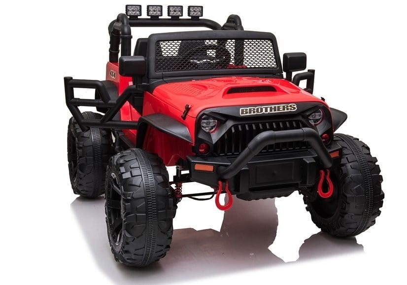 Auto napędzane jest dwoma mocnymi silnikami 200W i dwoma akumulatorami 12V7ah. Pojazd posiada otwierane drzwi dla dzieci oraz wygodne, miękkie siedzenie z pasami bezpieczeństwa a także przednie i tylne światła LED. Dodatkową zaletą są miękkie koła EVA z terenowym bieżnikiem a także amortyzatory zapewniające komfort jazdy po różnego rodzaju nawierzchniach. Kierownica z klaksonem oraz różne melodie wgrane w panel są dodatkową atrakcją. Panel posiad wejście na USB, AUX, kartę pamięci i Bluetooth