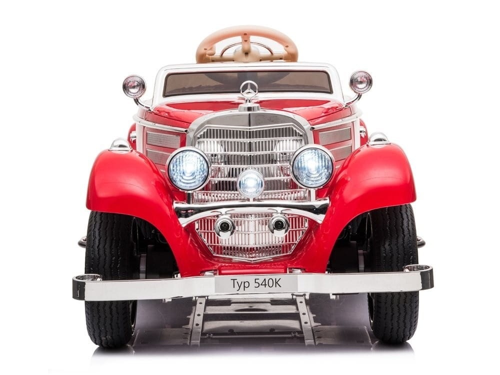 Zminiaturyzowana wersja retro Mercedesa to nie tylko fantastyczny wygląd. Auto pod swą „maską” ukrywa silniki 4x45W oraz akumulator 12V10Ah, dzięki którym kilkuletni kierowca może podróżować z prędkością od 5 do 7 km/h. Do zestawu dołączono innowacyjny pilot 2.4G, umożliwiający zdalne sterowanie autkiem. W budowie pilota umieszczono przyciski pozwalające na wybór kierunku: prawo/lewo, przód/tył, a także wybór prędkości oraz awaryjne, natychmiastowe zatrzymanie. Rozwiązanie to sprawia, że z Mercedesa 540K mogą korzystać także młodsze dzieciaki, jeżdżąc w sterowanym przez opiekunów pojeździe.