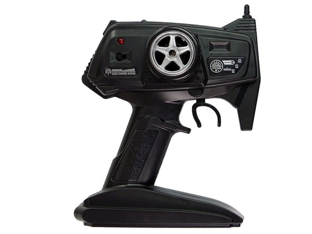 W zestawie znajduje się wygodny i precyzyjny kontroler. Jeśli kiedykolwiek sterowałeś profesjonalnym autem, wiesz, że tego typu pilot pozwala czerpać maksymalną przyjemność z jazdy. Bezprzewodowy pilot, dołączony do zestawu, pracuje na częstotliwości 2.4 GHz, dzięki czemu można ścigać się w większym gronie bez obaw o wzajemne zakłócenia. Możliwość sterowania we wszystkich kierunkach pozwala na odkrywanie nowych tras. Dodatkową zaletą jest możliwość wspinania się pod kątem 45 stopni, więc stos książek nie stanowi przeszkody.