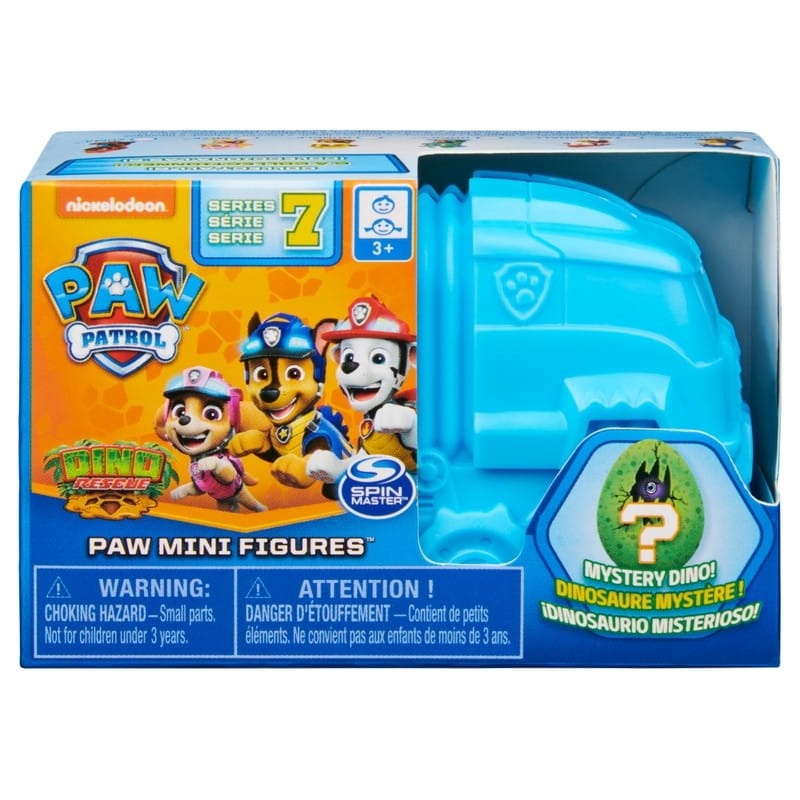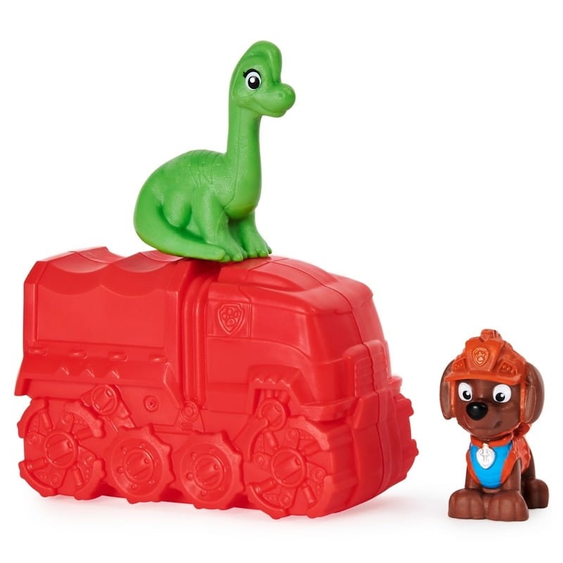 Wspaniały zestaw dla małych fanów Psiego Patrolu! Każde z dwóch opakowań (niebieskie i czerwone) w kształcie pojazdu kryje w sobie 2 mini figurki:  bohaterskiego szczeniaczka i dinozaura. Jaki szczeniak i jaka figurka znajdują się w zestawie? To niespodzianka dla Malucha! Zbierz wszystkie 6 szczeniąt i 24 urocze dinozaury! Dziecko może tworzyć własne prehistoryczne przygody z udziałem Chase’a, Marshalla, Rubble’a, Skye, Rocky’ego i Zumy.