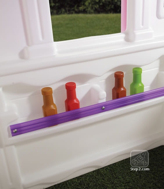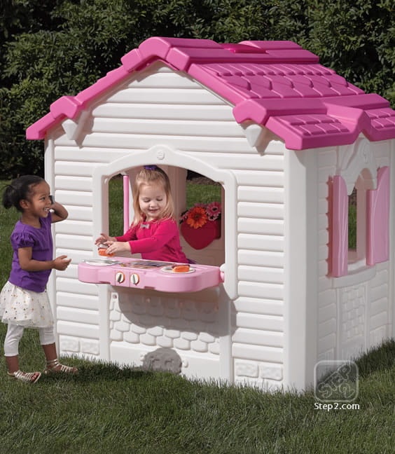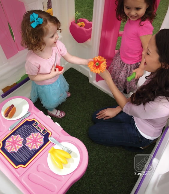 Uroczy biały domek w różowe serduszka z zamykanymi okiennicami, dekoracyjnym dachem ze świetlikiem i stylowymi drzwiami. Ze względu na kolory każda mała dziewczynka będzie się czuła w nim jak laleczka Barbie.Wewnątrz domu znajduje się zegar z ruchomymi wskazówkami, elektroniczny telefon bezprzewodowy (potrzebne 2 baterie "AA", nie zawarte w zestawie), dwustronny blat zmienia się z kuchenki wewnątrz domu na grilla na zewnątrz.
