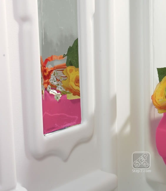 Mała Pani Domu może pielęgnować kwiatki w doniczce w kształcie serca umieszczonej w okienku.