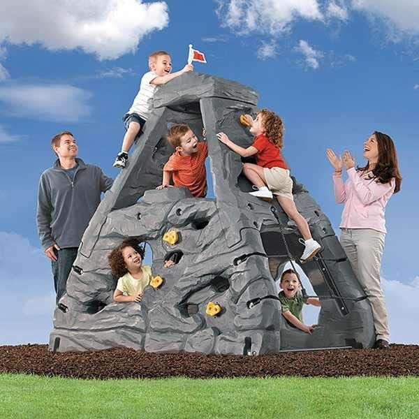 Góra wspinaczkowa STEP2 to wspaniałe miejsce aktywnej zabawy dla Twoich pociech. Ta czterostronna, realistycznie wyglądająca ściana skalna ma wysokość nieco ponad 2 metry i oferuje  ok. 9 metrów kwadratowych powierzchni do wspinania o różnych stopniach trudności. Na ściankach zamontowano dwie drabinki linowe, 9 profesjonalnych, masywnych uchwytów umożliwiających wspinanie, otwory do przechodzenia i wspinania oraz zdejmowaną flagę na szczycie góry. Po środku góry na wysokości około 1 metra od ziemi umieszczono platformę, która służy jako dodatkowy punkt obserwacyjny.
