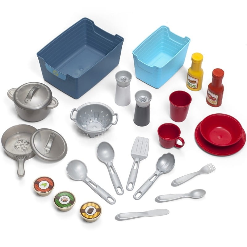 • Realistyczne funkcje kuchni, wbudowany zlew z kranem, duży blat, lodówka i piekarnik z otwieranymi drzwiami, a także mnóstwo miejsca na naczynia i inne akcesoria.