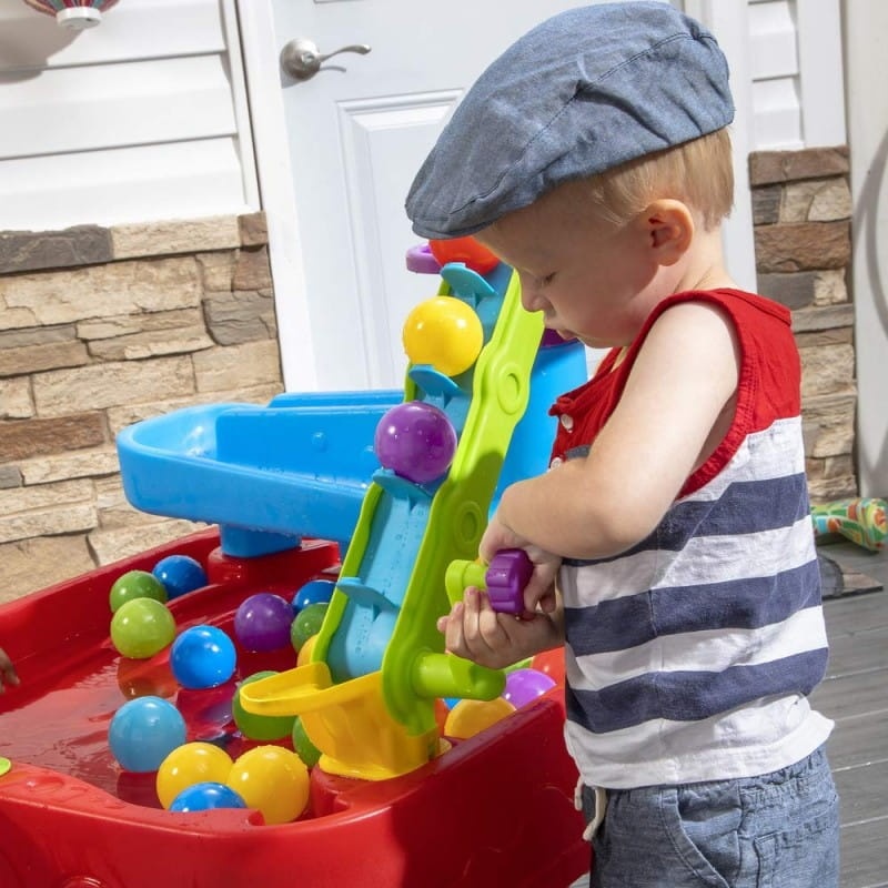 Stolik jest wystarczająco duży, aby umożliwić dzieciom wspólną zabawę, zachęcając do rozwoju umiejętności społecznych i dzielenia się. Dodaj wodę do stołu, aby zwiększyć radość z gry w piłkę. Od dźwigni po katapulty i systemy kół pasowych, ten dziecięcy stół do gry w piłkę ma wszystko. Gotowy do gry? Umieść piłkę do gry u podstawy wieży, a następnie przekręć system pasa i koła pasowego, aby podciągnąć piłki do górnego poziomu! Zobacz, jak grawitacja ściąga kulki przez lejek, przez serię ramp i wreszcie z powrotem do misy stołowej. Podczas zabawy maluchy poznają wczesne koncepcje fizyki, takie jak ruch, siła, związki przyczynowo-skutkowe i wiele więcej!
