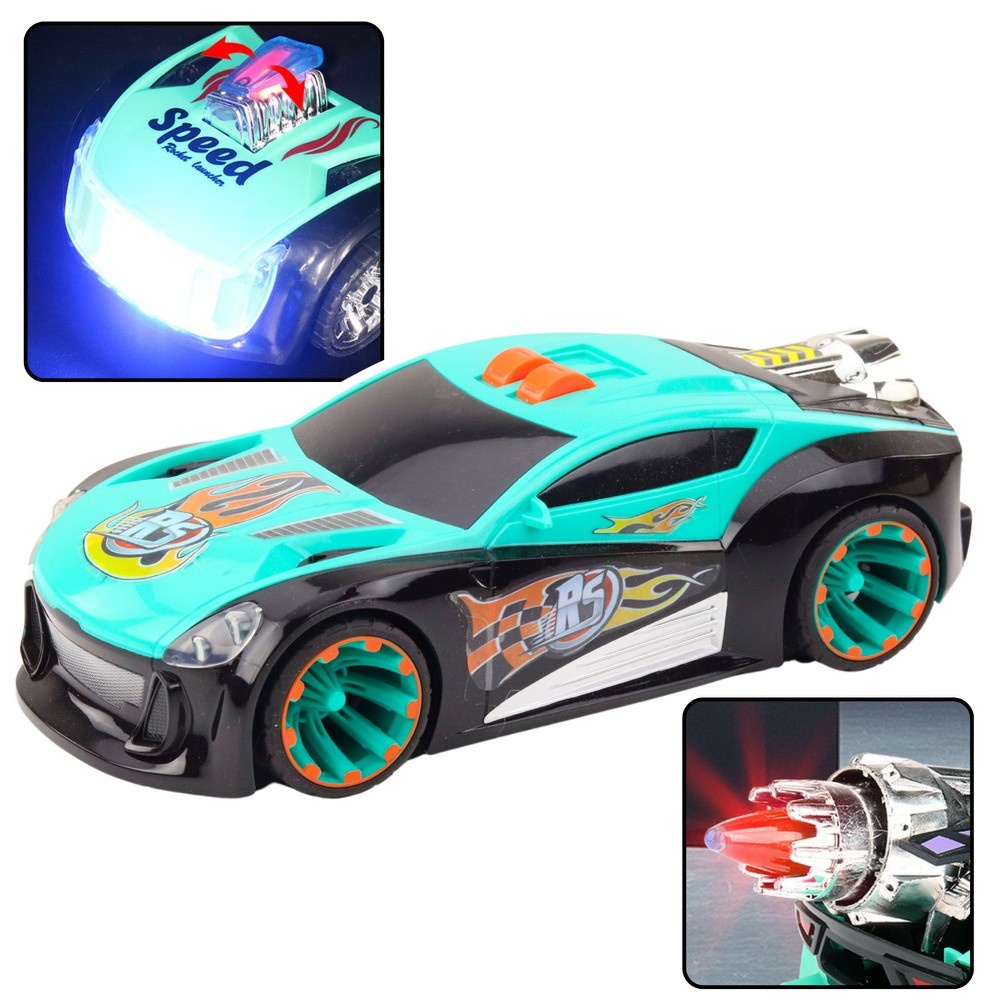 SAMOCHÓD WYŚCIGOWY Z RAKIETĄ ŚWIATŁA DŹWIĘKI TURKUSOWY