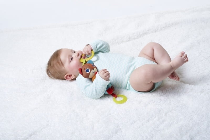 Zawieszka jest na tyle mała, że można ją zabrać ze sobą wszędzie. Dzwoneczek miś Isaac stymuluje dziecko do używania paluszków i dłoni na różne sposoby, pomagając dziecku rozwijać motorykę małą.