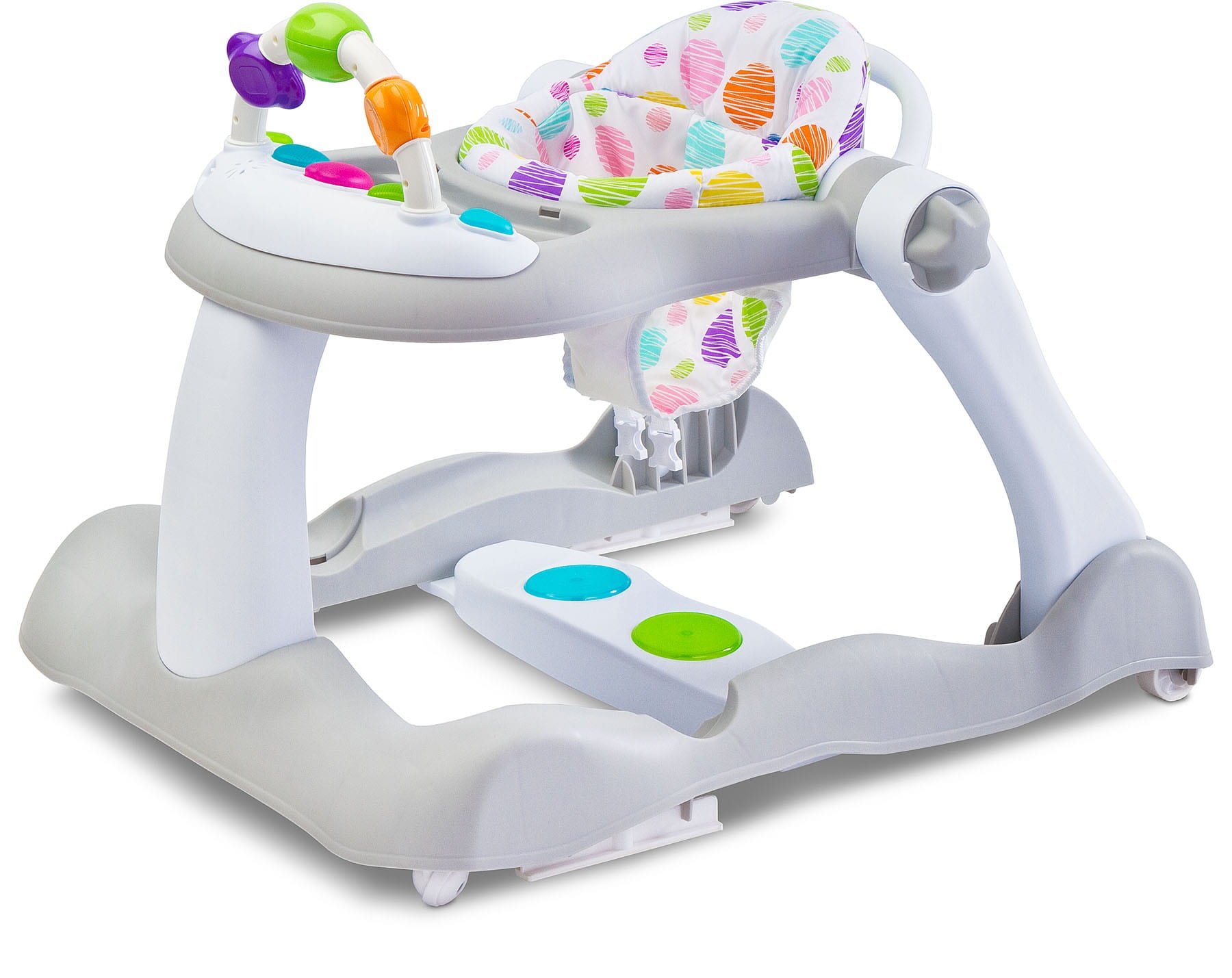 • panel do umieszczenia pod nóżkami dziecka – posiada duże kolorowe przyciski-światełka, zachęcające do naciskania