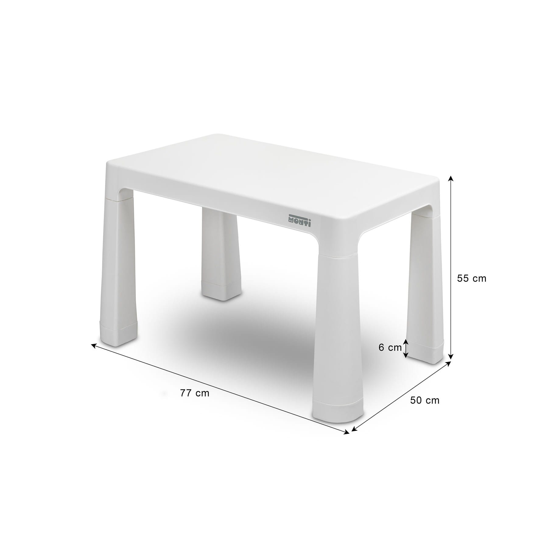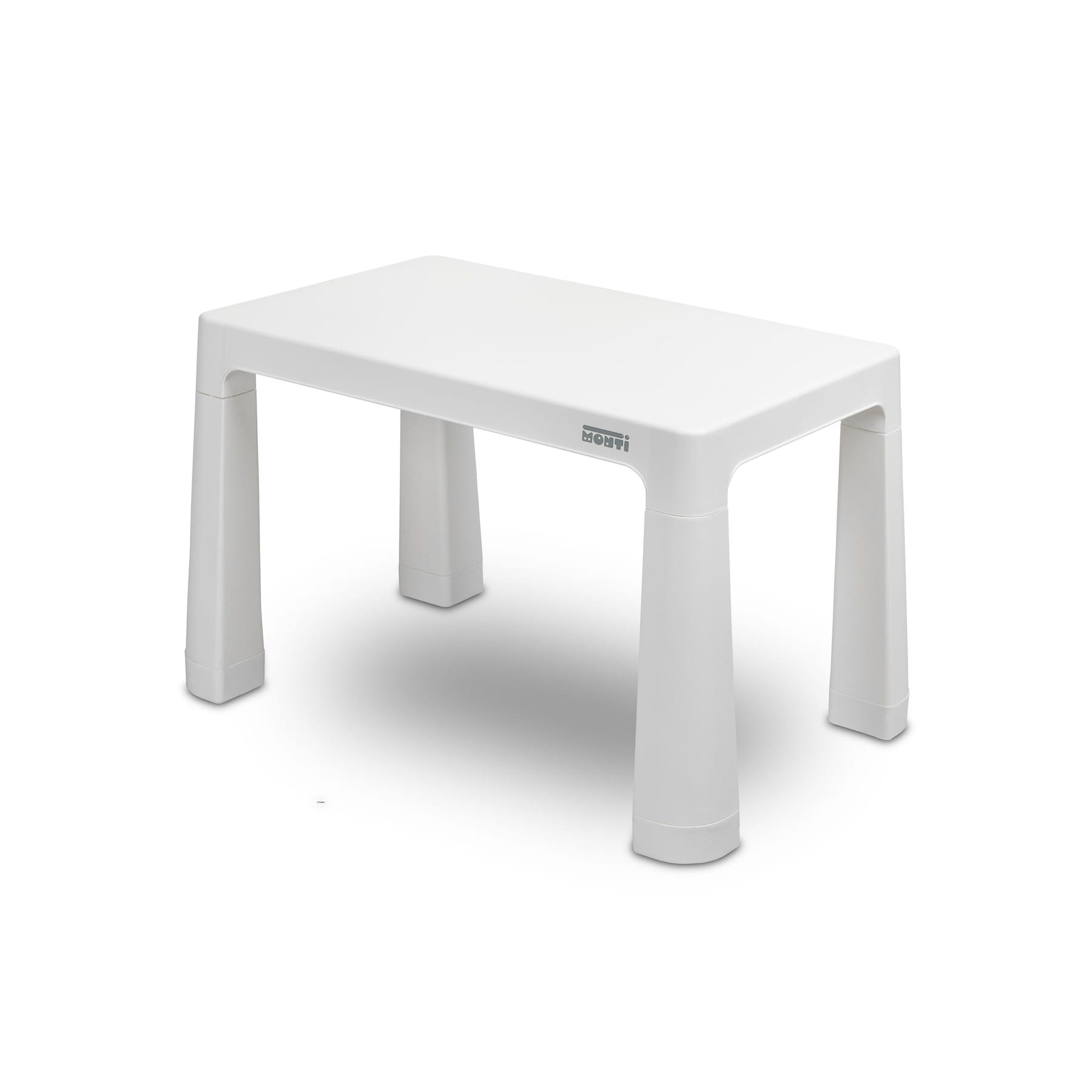 Monti to wszechstronny stoliczek dla dzieci z krzesełkami. Z jego pomocą łatwo stworzysz kącik do prac artystycznych lub zabawy zarówno w domu, jak i w plenerze. Zestaw wykonany został z wysokiej jakości tworzywa sztucznego — bezpiecznego oraz odpornego na różne kaprysy pogody i dzikie zabawy. Stolik i krzesełka są lekkie, więc dziecko może je samodzielnie przenosić. Dzięki prostej konstrukcji Monti można łatwo złożyć – wystarczy połączyć elementy na wcisk. Stolik posiada 2 szuflady, które chowają się pod blatem a także ma możliwość obniżenia wysokości o 6 cm.