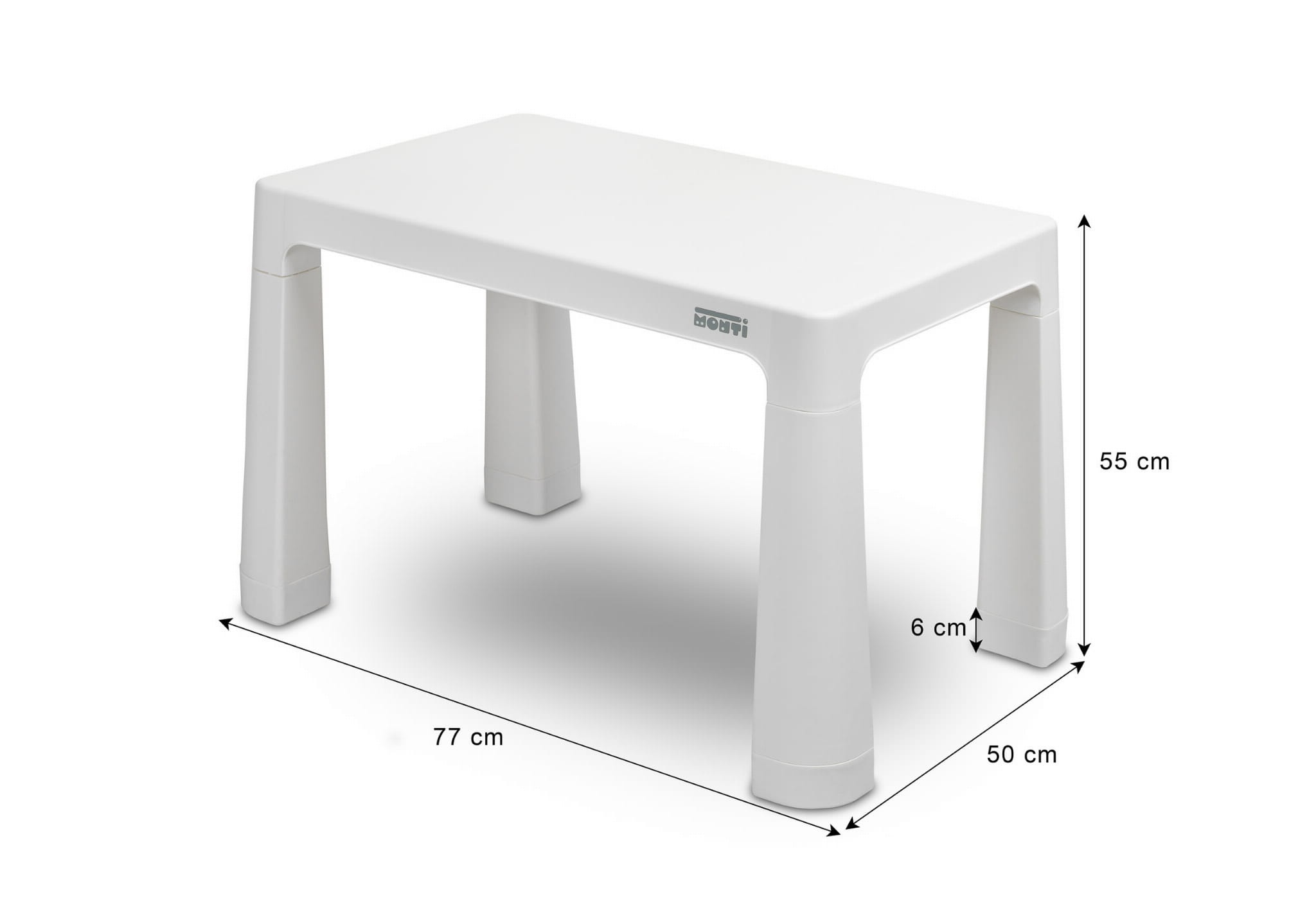 Monti to wszechstronny stoliczek dla dzieci z krzesełkami. Z jego pomocą łatwo stworzysz kącik do prac artystycznych lub zabawy zarówno w domu, jak i w plenerze. Zestaw wykonany został z wysokiej jakości tworzywa sztucznego — bezpiecznego oraz odpornego na różne kaprysy pogody i dzikie zabawy. Stolik i krzesełka są lekkie, więc dziecko może je samodzielnie przenosić. Dzięki prostej konstrukcji Monti można łatwo złożyć – wystarczy połączyć elementy na wcisk. Stolik posiada 2 szuflady, które chowają się pod blatem a także ma możliwość obniżenia wysokości o 6 cm.