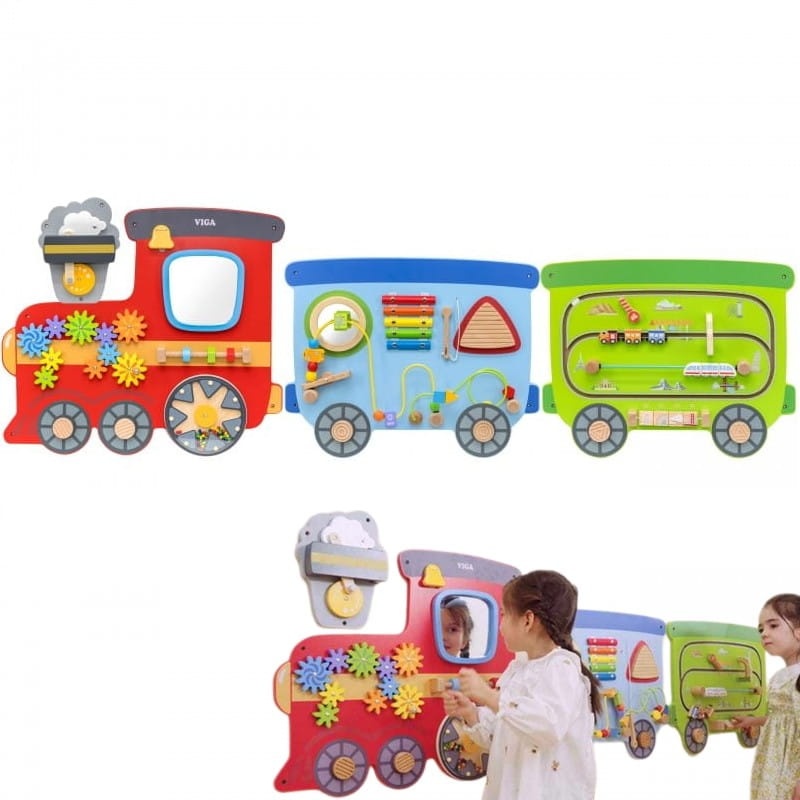 VIGA DREWNIANA SENSORYCZNA TABLICA MANIPULACYJNA POCIĄG 44717