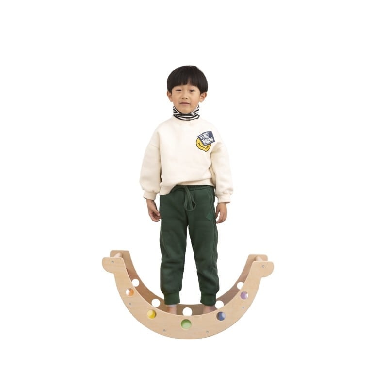 VIGA Drewniany Bujak Mostek 2w1 Huśtawka MONTESSORI Tęczowa