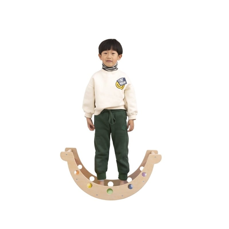 VIGA Drewniany Bujak Mostek 2w1 Huśtawka Montessori Tęczowa 44757