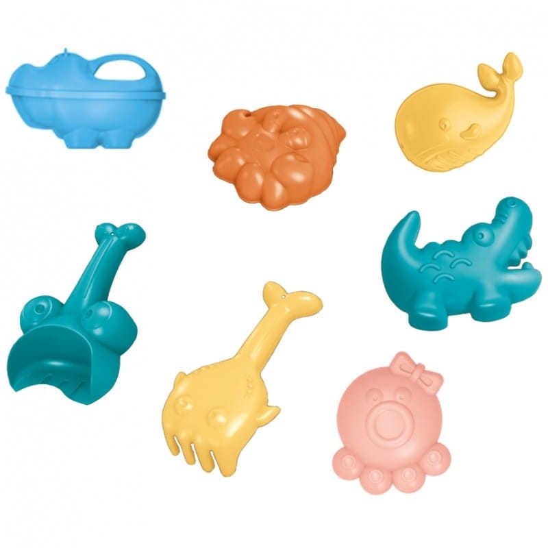 Zestaw do zabawy piaskiem i wodą sprawdzi się świetnie podczas letnich dni, zarówno w przydomowym ogródku, jak i podczas wakacji np. nad morzem czy jeziorem.  Całość zapakowana jest w walizkę w kształcie zwierzątka, w której znajdują się akcesoria do piasku oraz zabawka wodna. Wystarczy napełnić spód walizki wodą i dzięki kubeczkowi wlać wodę do głowy zwierzątka, aby następnie obserwować, jak woda spływa w dół, wprawiając w ruch kołowrotki. Taka zabawa rozwija zmysły dziecka oraz skupia jego uwagę. Akcesoria takie jak foremki, łopatka i grabki pozwalają na kompletną zabawę w piasku, nawet we dwoje. Walizka posiada kółeczka i wysuwaną rączkę, dzięki czemu można do niej spakować wszystkie akcesoria i ruszyć w drogę!