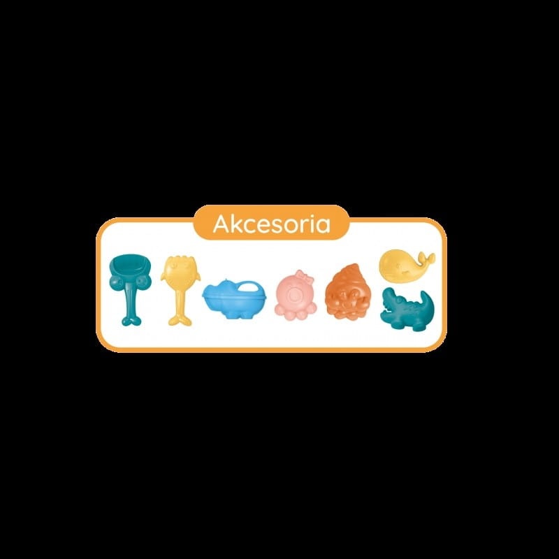 • akcesoria do piasku: grabki, łopatka, foremki
