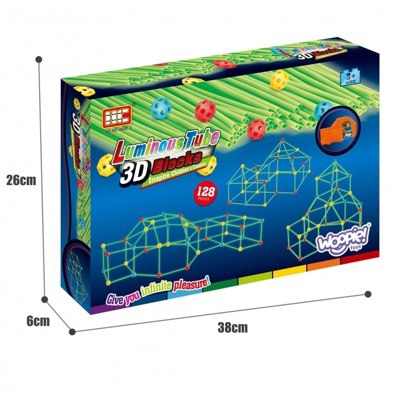 WOOPIE Duże Klocki Konstrukcyjne Namiot Słomki Rurki Świecące w Ciemności 128 el.
