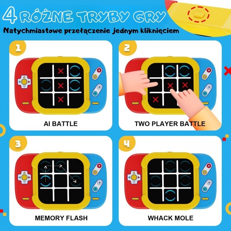 • - Cztery tryby rozgrywki - Bitwa z AI, rozgrywka 1v1, memory, uderz kreta