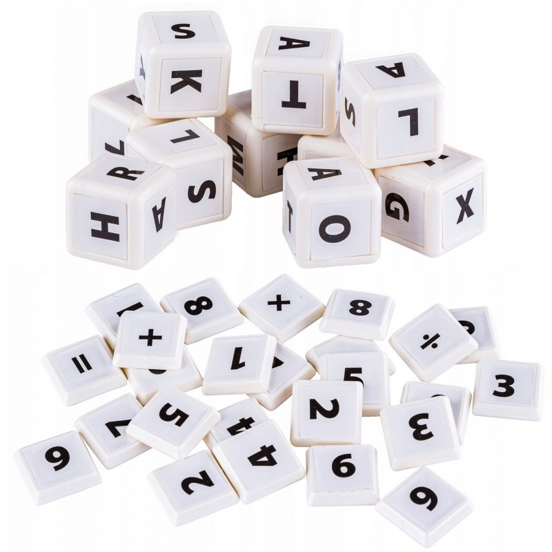 • - 10 kostek z literami