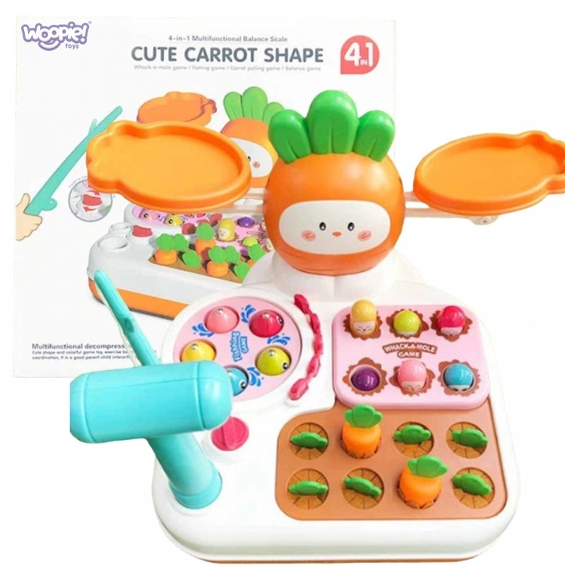 WOOPIE Gra MONTESSORI 4w1 Łowienie Rybek Waga Szalkowa Uderz w Kreta i Marchewki