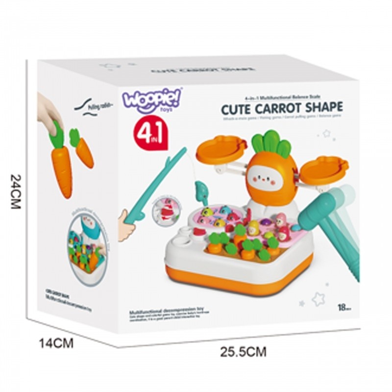 Multifunkcyjna Waga Szalkowa od marki Woopie została zaprojektowana specjalnie dla dzieci od 18 miesiąca życia. Produkt ten nie tylko pomaga dziecku rozwijać zręczność i umiejętności logicznego myślenia, ale również rozwija zdolność koncentracji. Wszystkie elementy wykonane są z tworzywa sztucznego ABS. Charakteryzuje się on wytrzymałością, elastycznością, dobrą sprężystością oraz łatwością formowania. Co najważniejsze, ten rodzaj plastiku jest całkowicie pozbawiony szkodliwych zanieczyszczeń, co zapewnia pełne bezpieczeństwo zdrowotne dla dziecka podczas zabawy. Zestaw zabawek inteligentnie łączy cztery różne gry na jednym stole, umożliwiając dziecku zabawę w różnorodne gry jednocześnie, co zapobiega szybkiemu znudzeniu się. Zabawka "uderzanie w kreta, łowienie ryb, wyciąganie marchewek, waga szalkowa.