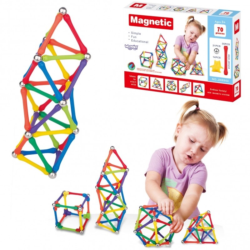 WOOPIE Klocki Magnetyczne Konstrukcyjne Układanka Kreatywna 70 el.