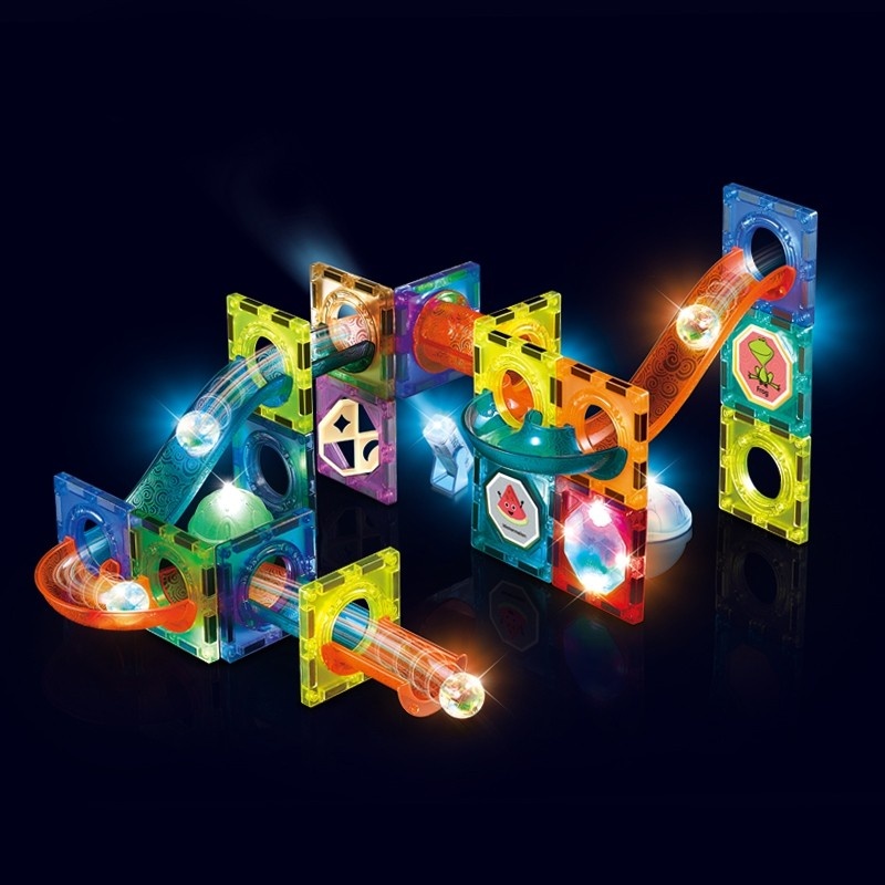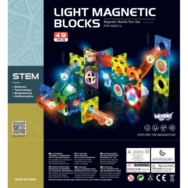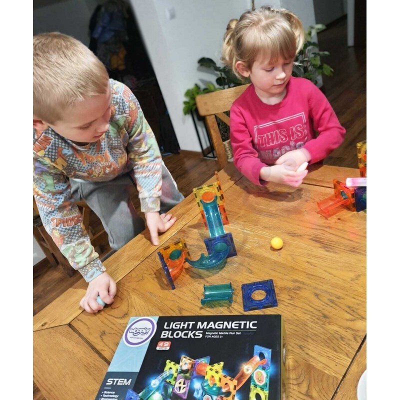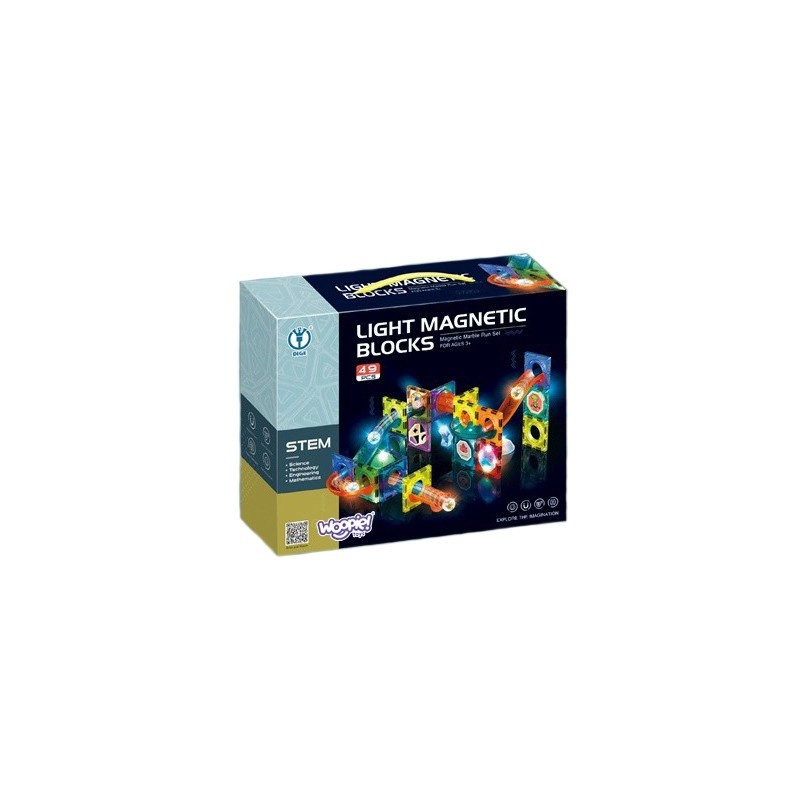 WOOPIE Klocki Magnetyczne Tor Kulkowy Świetlny 49 el.