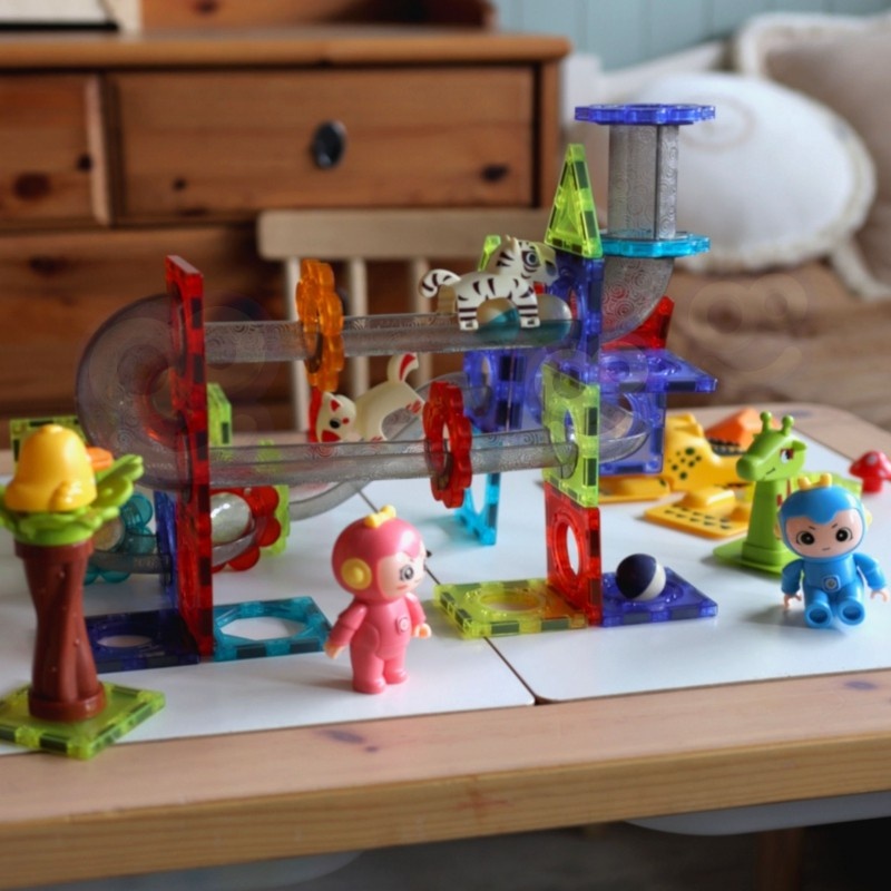 WOOPIE Klocki Magnetyczne Tor Kulkowy Zwierzęcy Raj 104 el.