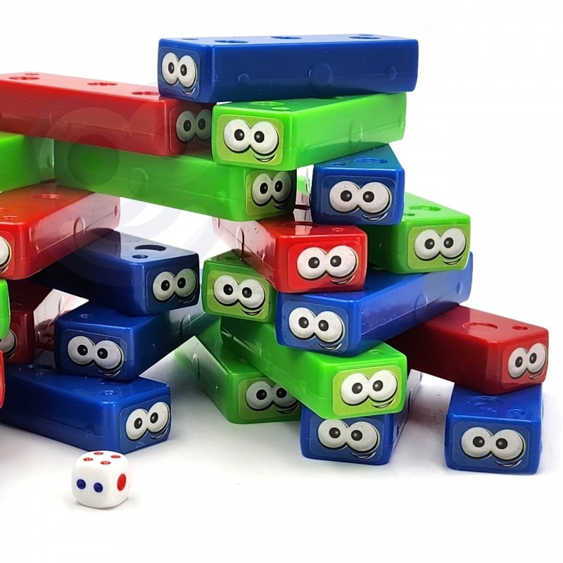 Chwiejąca się wieża od marki Woopie to pełna emocji gra zręcznościowa dla całej rodziny! Klocki z zabawnymi oczami i kolorowa kostka tworzą świetne połączenie dynamicznej rozrywki i ćwiczenia zdolności manualnych. Gra polega na wyciąganiu klocków w kolorze wskazanym przez kostkę i układaniu ich na szczycie wieży – bez przewrócenia konstrukcji! Kolorowe, lekkie elementy i proste zasady sprawiają, że gra jest doskonała zarówno dla dzieci, jak i dorosłych. To świetna propozycja na rodzinne wieczory, spotkania z przyjaciółmi lub zabawę w przedszkolu. Gra uczy Twoje dziecko sprytu, refleksu i rozwija jego umysł. Korzystnie wpływa na rozwój zdolności manualnych.