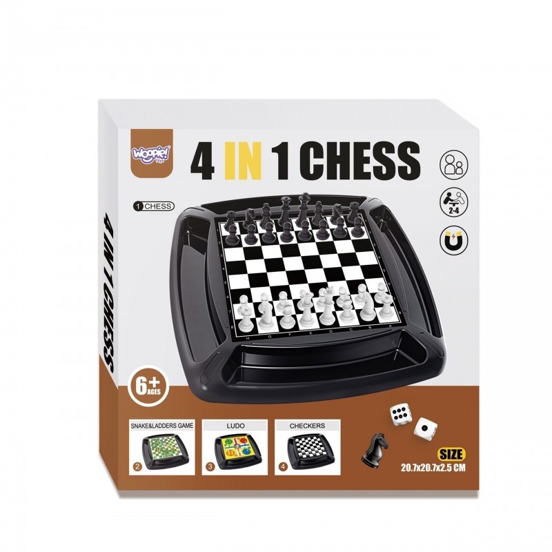 WOOPIE Zestaw 4w1 Gry Planszowe Warcaby, Szachy, Chińczyk, Drabiny i Węże