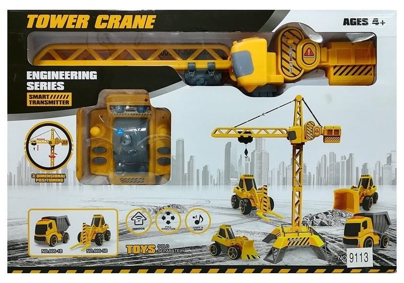 Głównym elementem zestawu jest wysoki dźwig starowany za pomocą pilota. Pilot działający na częstotliwości 27 MHz umożliwia obracanie się górnej części dźwigu, poruszanie się haka wzdłuż ramienia, a także opuszczanie liny w celu przenoszenia znajdujących się przedmiotów. Konstrukcja dźwigu wykonana jest z łatwo wczepiających się w siebie elementów, dzięki czemu jest niezwykle prosta do złożenia. Na końcu rozwijanej liny znajduje się niewielki hak umożliwiający podczepienie wiaderka służącego do przenoszenia materiałów sypkich. Miejsce na baterie zasilające dźwig znajduje się w jego tylnej części, będąc idealną przeciwwagą dla podnoszonych towarów. Podstawa dźwigu wyposażona jest w cztery nóżki wspierające stabilność.