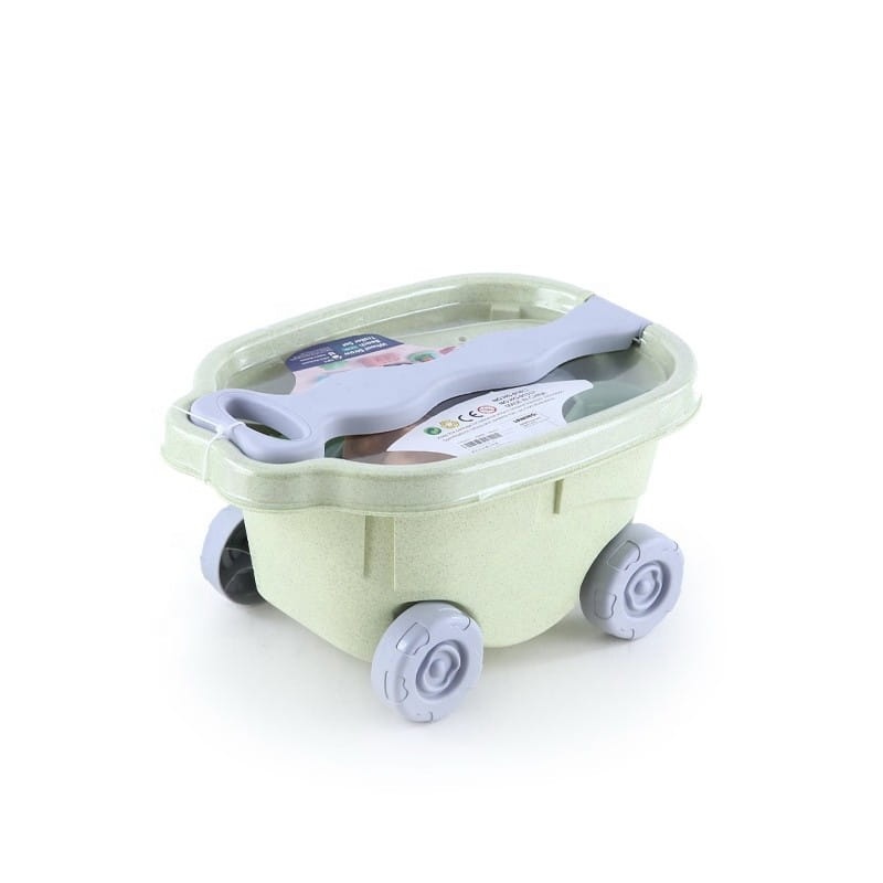 Zestaw do Piasku z Wózkiem to świetny dodatek do piaskownicy czy ogrodu. Zestaw zawiera 13 elementów: wiaderko, konewkę, kołowrotek, sitko, 7 foremek, łopatkę i grabki. Wiaderko i konewka mają wygodny uchwyt do przenoszenia. Zestaw ma najmodniejszy pastelowy design oraz został wykonany z organicznego biodegradowalnego (podlegającemu samoistnemu rozkładowi) materiału. Dodatkowo podlega kompostowaniu. Produkt bezpieczny dla dzieci - dezynfekowany w 120 stopniach. Gwarancja super zabawy w piaskownicy, na plaży czy w ogrodzie! Produkt przyjazny środowisku!
