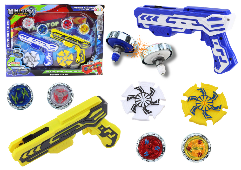 Zestaw Pistoletów Wyrzutnia 4 Metalowe Krążki Niebieski Żółty Światła